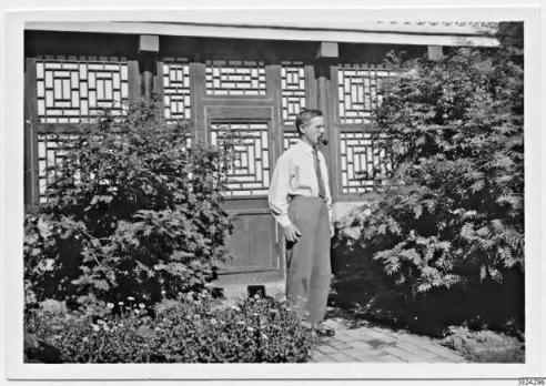 为了体验胡同生活,他还在六国饭店附近的大阮府胡同租了房。一张站在屋前的照片,叼着烟斗,展现出瘦削而敏感的诗人气质,以及坚定而远大的学者抱负。